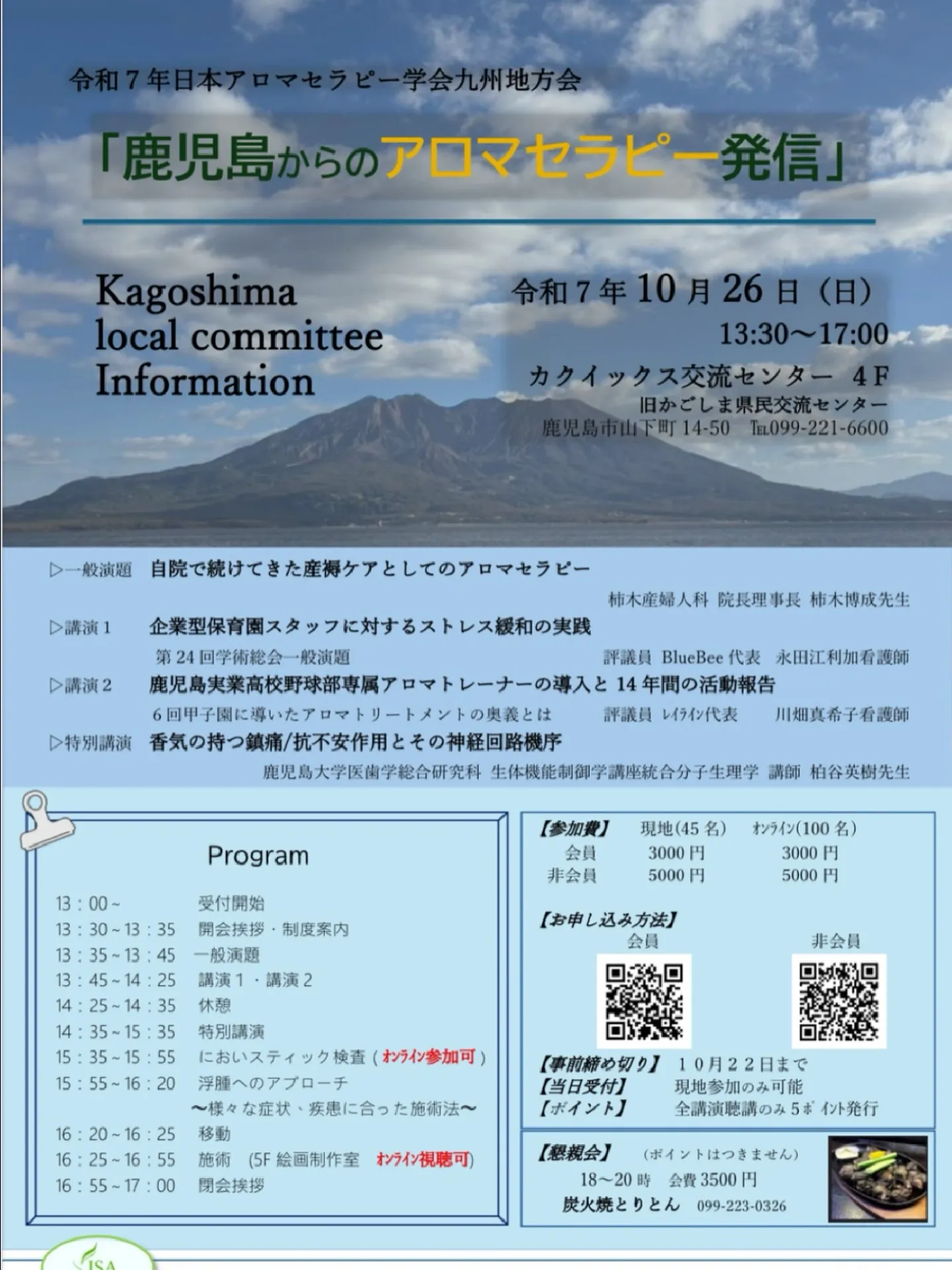 JSA日本アロマセラピー学会から10/26地方会のお知らせ